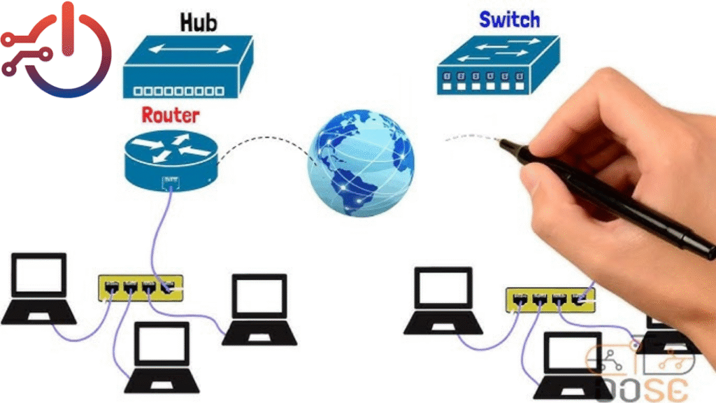 2) الراوتر (Router) – الموزّع والمنظّم — (تم التطرق له سابقًا لكن أذكر دوره هنا باختصار)